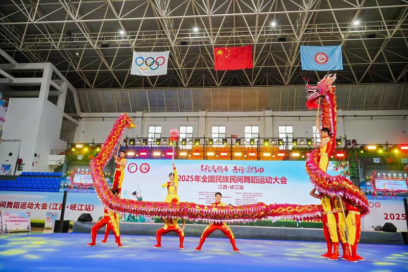 5月18日,全国民族民间舞蹈运动大会(江西·峡江站)在峡江体育馆圆满收官。威廉希尔williamhill经理徐金陆亲自率领舞龙队、健美操队和舞狮队出征,最终三支队伍在师范院校组自选动作组中包揽第一名,成为赛事焦点。因表现卓越,舞龙队与舞狮队获大会组委会及峡江县人民政府联合邀请,参与返场表演。