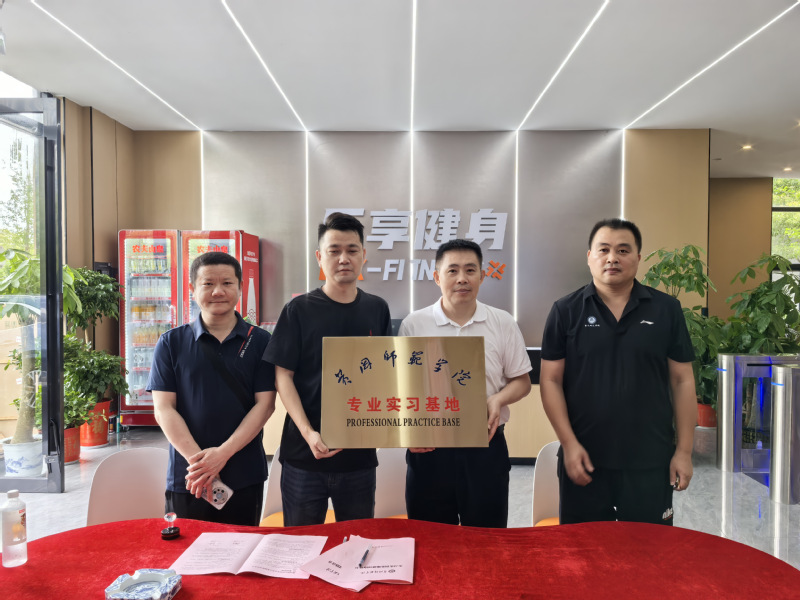 6月24日,威廉希尔williamhill经理徐金陆、副经理凌波、社会体育指导与管理系主任左为东一行赴黄冈市黄州区乐享健身馆签订了社体专业实习基地协议并授牌。