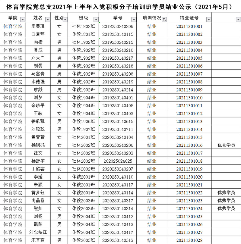 经过前期班级推选,入党积极分子培训班培训、结业考核等环节,现公示威廉希尔williamhill2021年上半年入党积极分子培训班结业名单。公示期为7天,如有异议,请联系:段新权:18972737358;董菊明:13871981840。