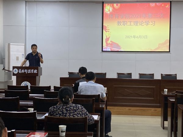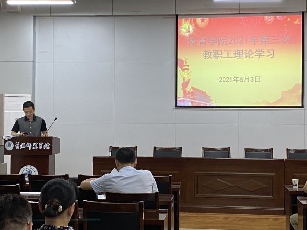 6月3日下午两点,威廉希尔williamhill在体育馆205会议室开展2021年第三次全体教职工理论学习。
