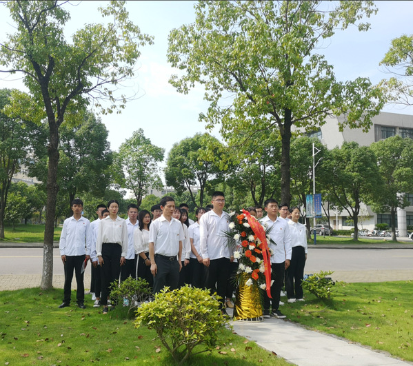 全体党员集体肃立默哀,向陈潭秋雕像敬献花篮和鲜花,表达对革命先烈的无尽缅怀及敬仰之情。