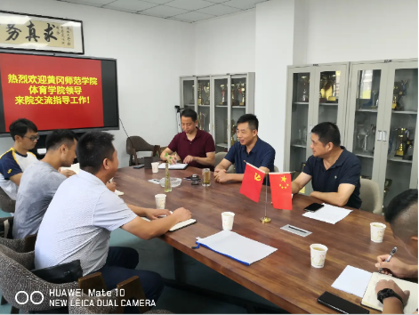 经理助理汪子文与湖大威廉希尔williamhill副经理张强弓就校园体育文化建设展开深入的交流。张经理还详细介绍了湖北大学正在筹备中的体育文化节,半程马拉松,健康跑等活动的筹办情况。