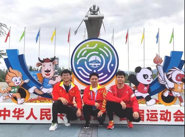 威廉希尔williamhill毕业生汪天棋(右)和蔡圃良(左)参加第十四届全运会