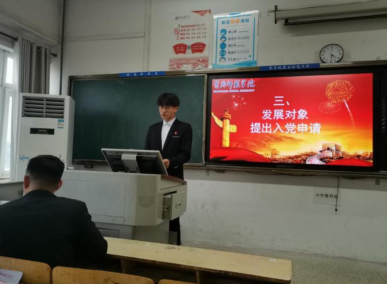 3、贾顺文等8名重点发展对象依次提出入党申请,并汇报培养考察期内的学习、工作、生活动态,及向党组织说明的相关问题。