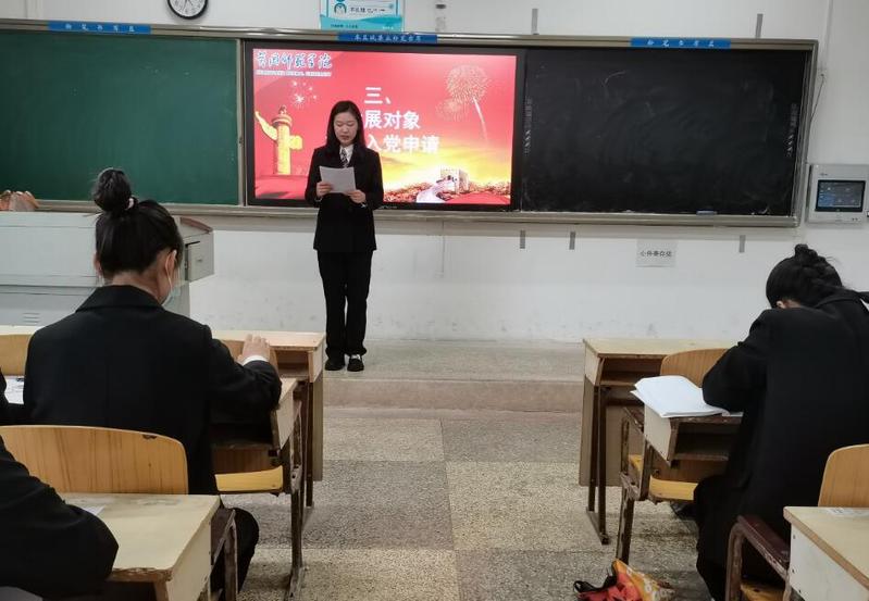 3、重点发展对象兰洁莹提出入党申请,并汇报培养考察期内的学习、工作、生活动态,及向党组织说明的相关问题。