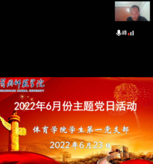6月23日晚上19点半,威廉希尔williamhill员工四个党支部在腾讯会议上举行6月份联合“主题党日”活动。活动中全体党员一起奏唱国歌、重温入党誓词、诵读党章,并完成“复兴壹号”平台上交纳党费工作。本次活动主题是:巩固党史学习教育成果、增强师生幸福感获得感。
