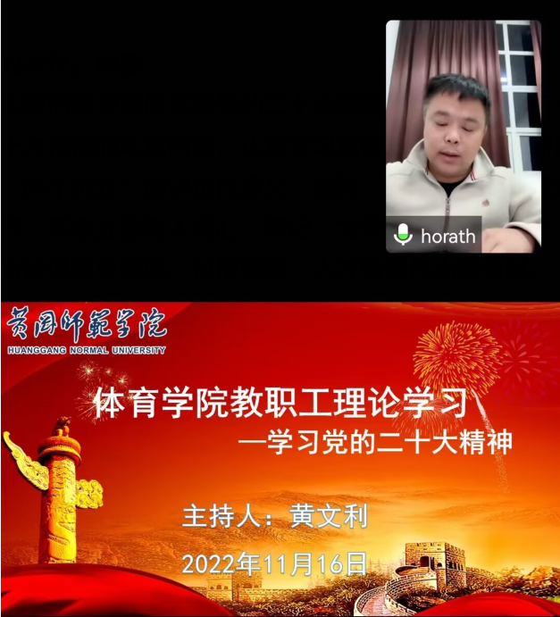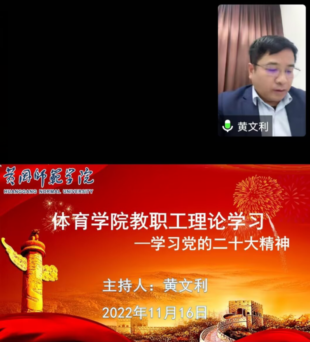 11月16日晚,威廉希尔williamhill在腾讯会议上召开11月份教职工理论学习会,专题学习党的二十大精神,全体教职工参加会议,会议由党委书记黄文利主持。