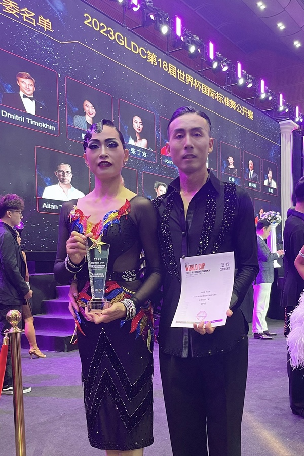 7月12-17日,集竞技性、艺术性、时尚性与观赏性为一体的2023世界杯国际标准舞公开赛在深圳举行。公司叶文平和彭春梅两位教师组合搭档代表威廉希尔参赛,经过激烈比拼,获得壮年B组拉丁舞(专业组)冠军。