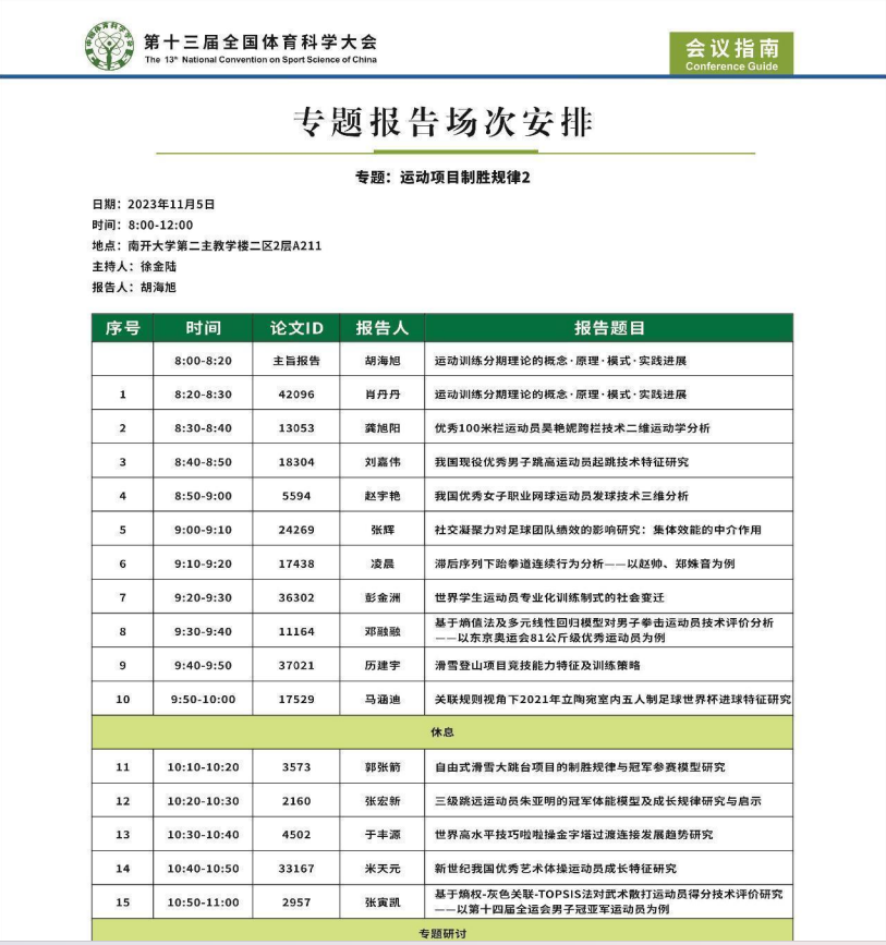 11月3至5日,由中国体育科学学会主办,主题为“科技赋能体育强国”的第十三届全国体育科学大会在天津举行。全国体育科学大会是国内最具权威性和影响力、规模大、层次高的综合性体育学术会议,是全国体育科技工作者展示最新体育科研成果、科技成果和交流科技信息的盛会。大会发布了《体育科学学科发展研究报告(2020—2023)》,确定了未来该学科和领域的研究重点和发展方向。大会同期举办了体育科技产品展示会。