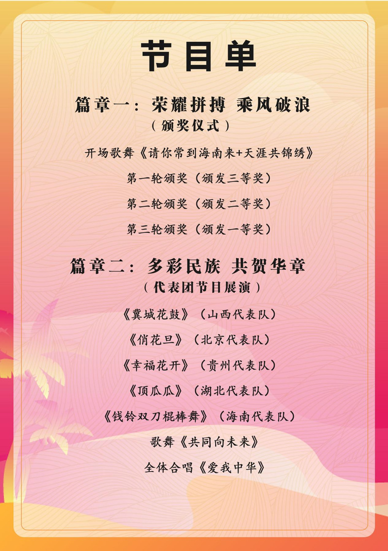 经过11月23日至28日两轮比赛的激烈角逐,由公司组织选送的表演项目技巧类比赛《顶瓜瓜》在来自全国170支参赛队的比赛中喜获一等奖,并被国家民委选定,在11月29日举行的颁奖典礼中做大型展演。