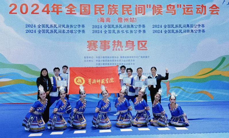 11月29日-12月1日,2024全国民族民间健身操公开赛在海南省儋州市举行!公司选派党委书记段新权为领队,石晓萍、侍术英两位老师为教练,12名员工运动员组队参赛。经过激烈角逐,一举夺得普通高校体育院校组民族健身操和广播体操两项冠军,并获批中国少数民族体育协会“全国民族民间健身操实验校”。