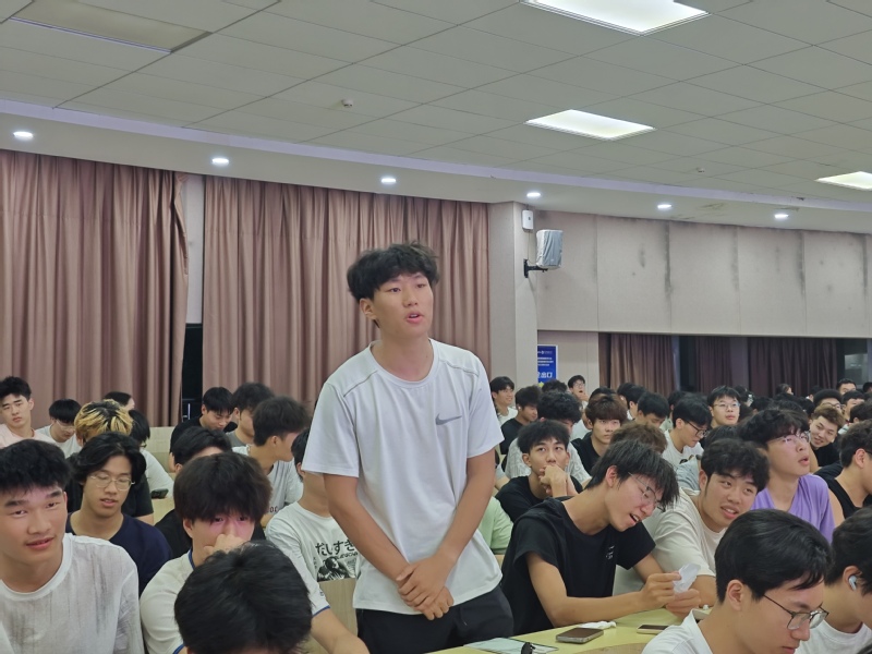 在提问环节,新生围绕“如何平衡训练与学习”等问题踊跃提问,胡教授用幽默与真诚的回答赢得全场掌声。
